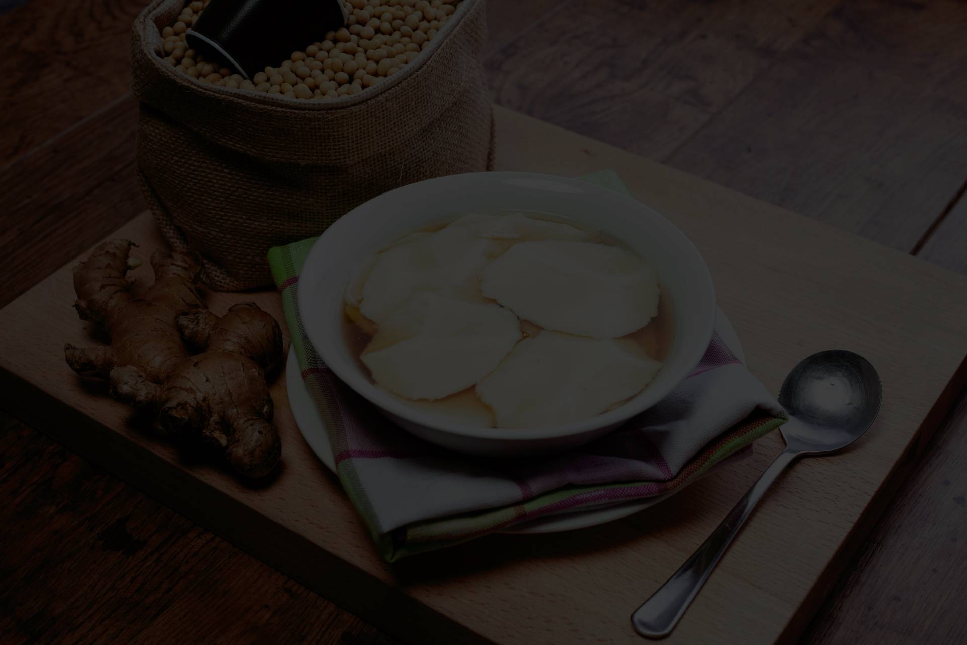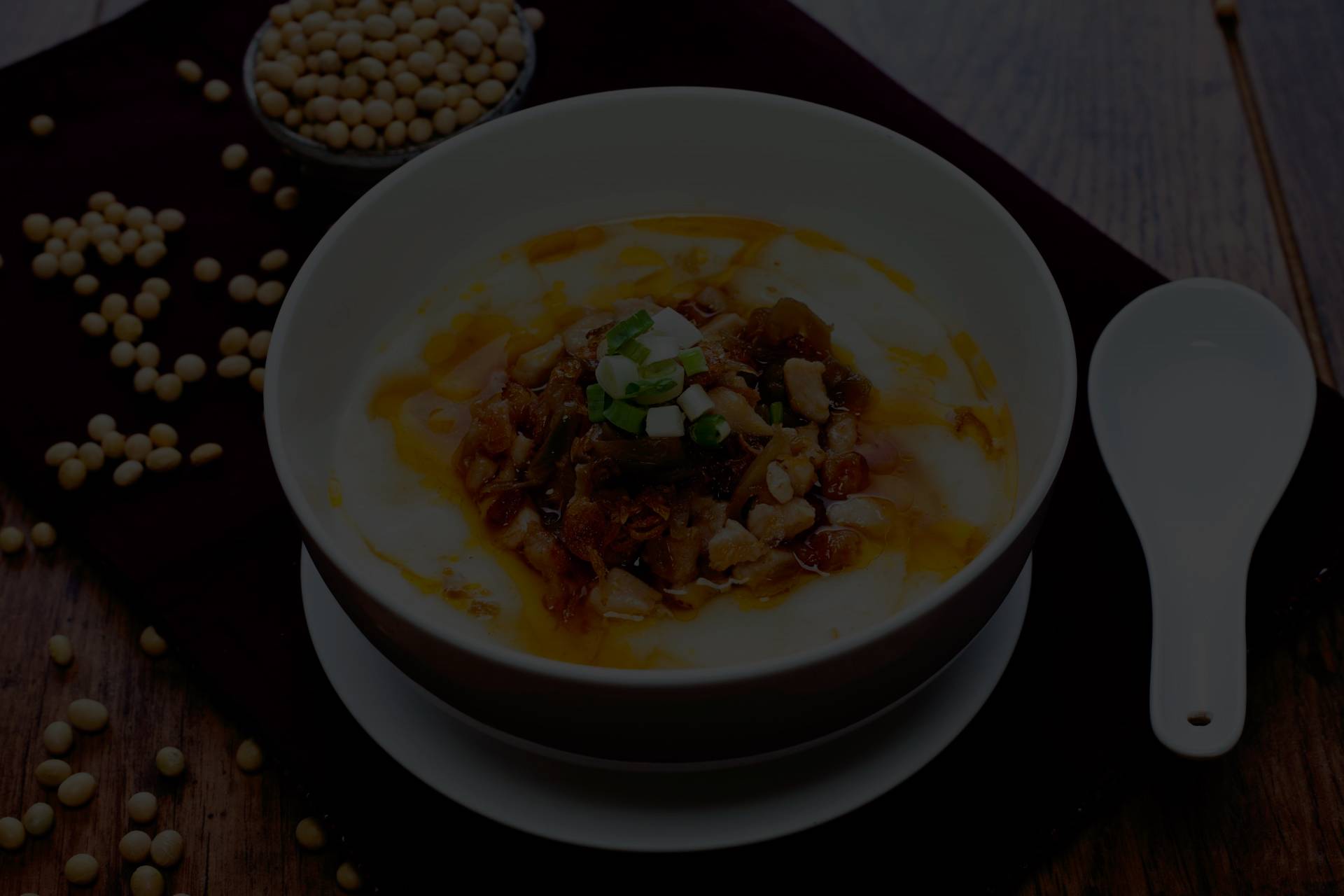 Soymilk broth, topped with marinated beef, tofu, egg, seawed and vegetables.